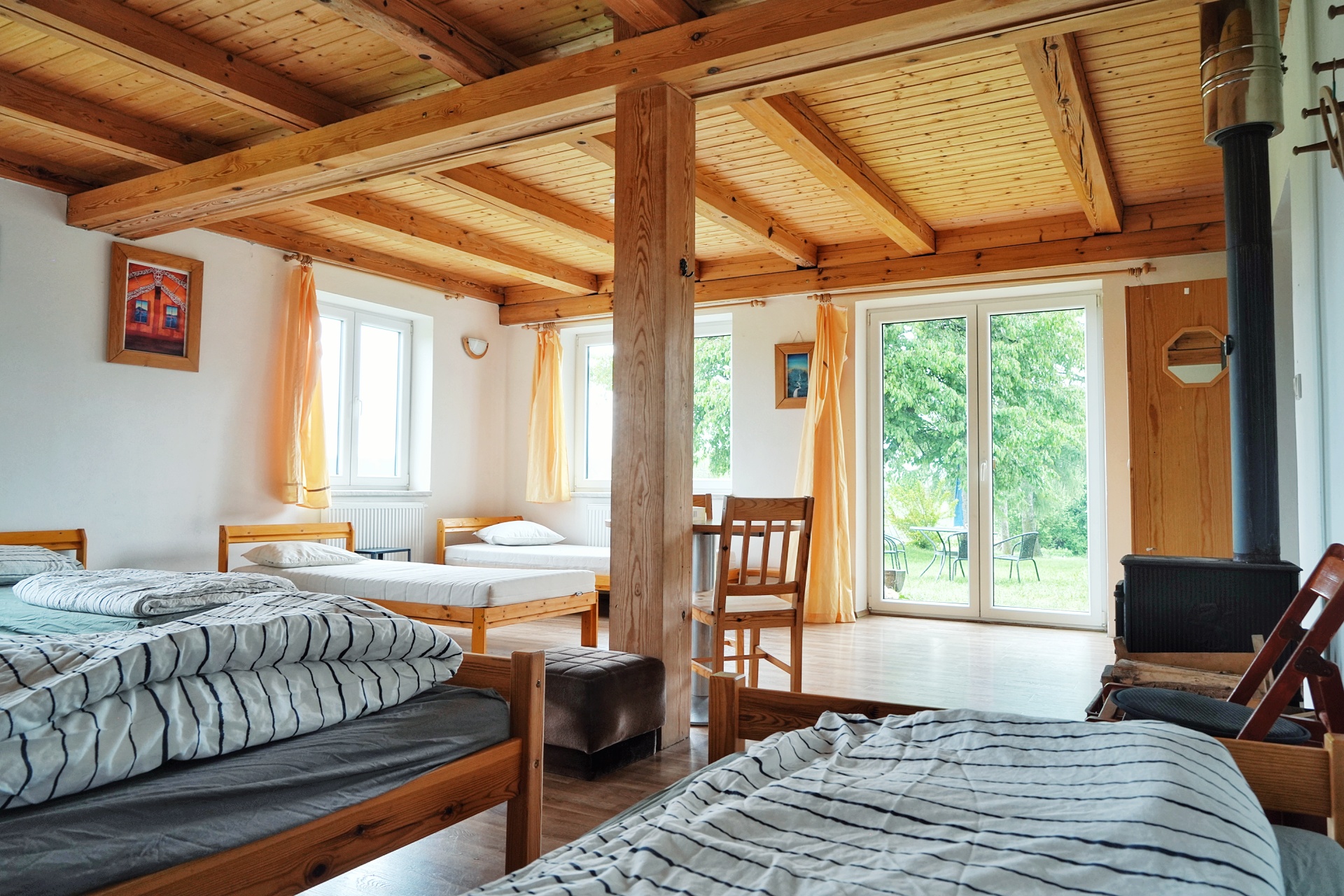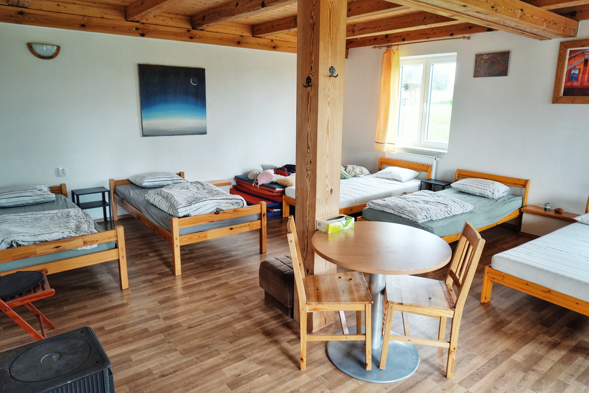 Prosvětlený šestilůžkový pokoj s postelemi a lůžkovinami (ve vestavbě, oddělený od ostatních prostor)